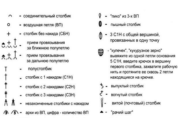 Предлагаем небольшую подборку образцов со схемами. Обозначения на схемах стандартные, приводим их для начинающих обучение вязальному делу.