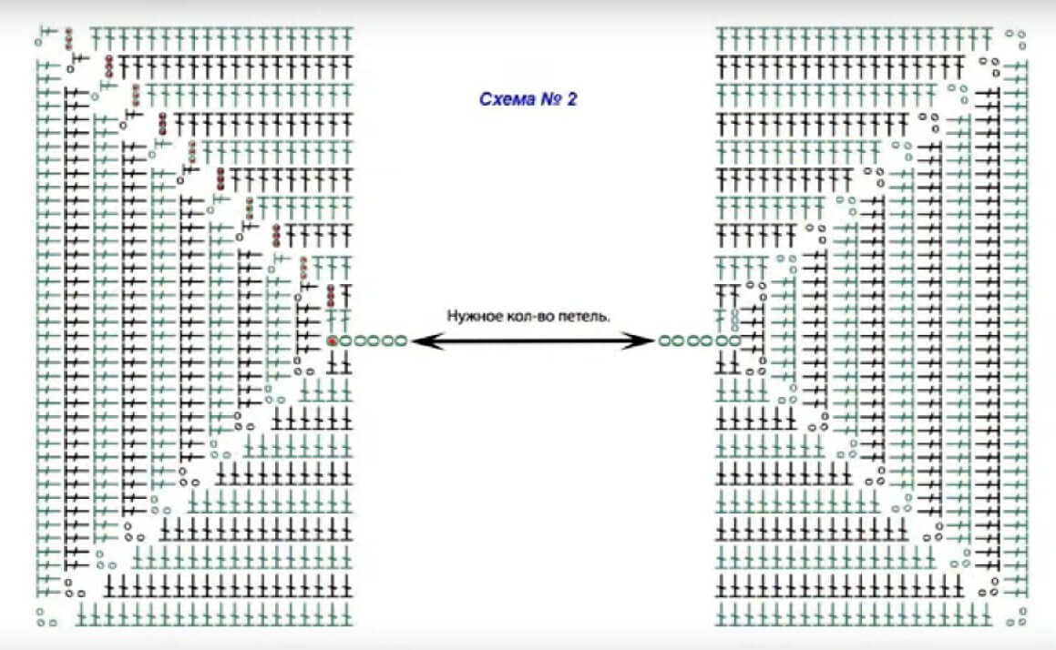 После подсчётов определим, что для прямоугольника мы должны набрать 32 ВП и далее вязать вкруговую по схеме.
