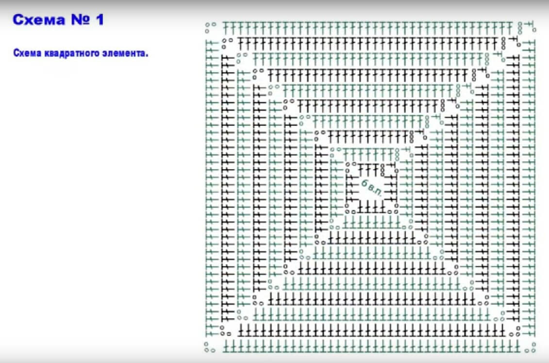 Квадратик связан из 10 рядов. Ширина одного ст. с/н – 1 см, высота ряда ст. с/н – 2 см, высота ряда ст. б/н – 1 см.