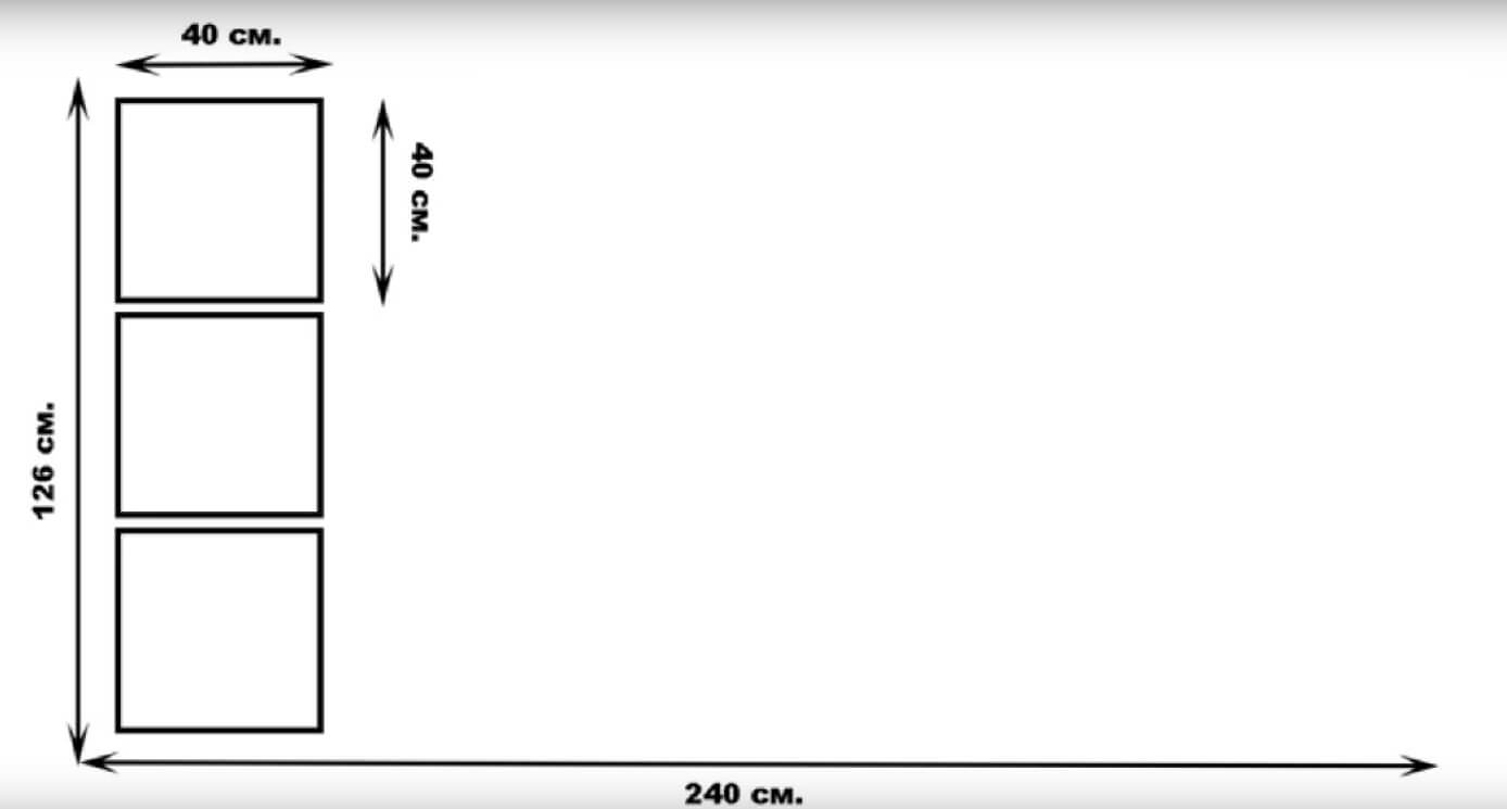 Так как ширина средних квадратов не изменилась и равна 40 см, то и у среднего элемента ширина будет равна 40 см.