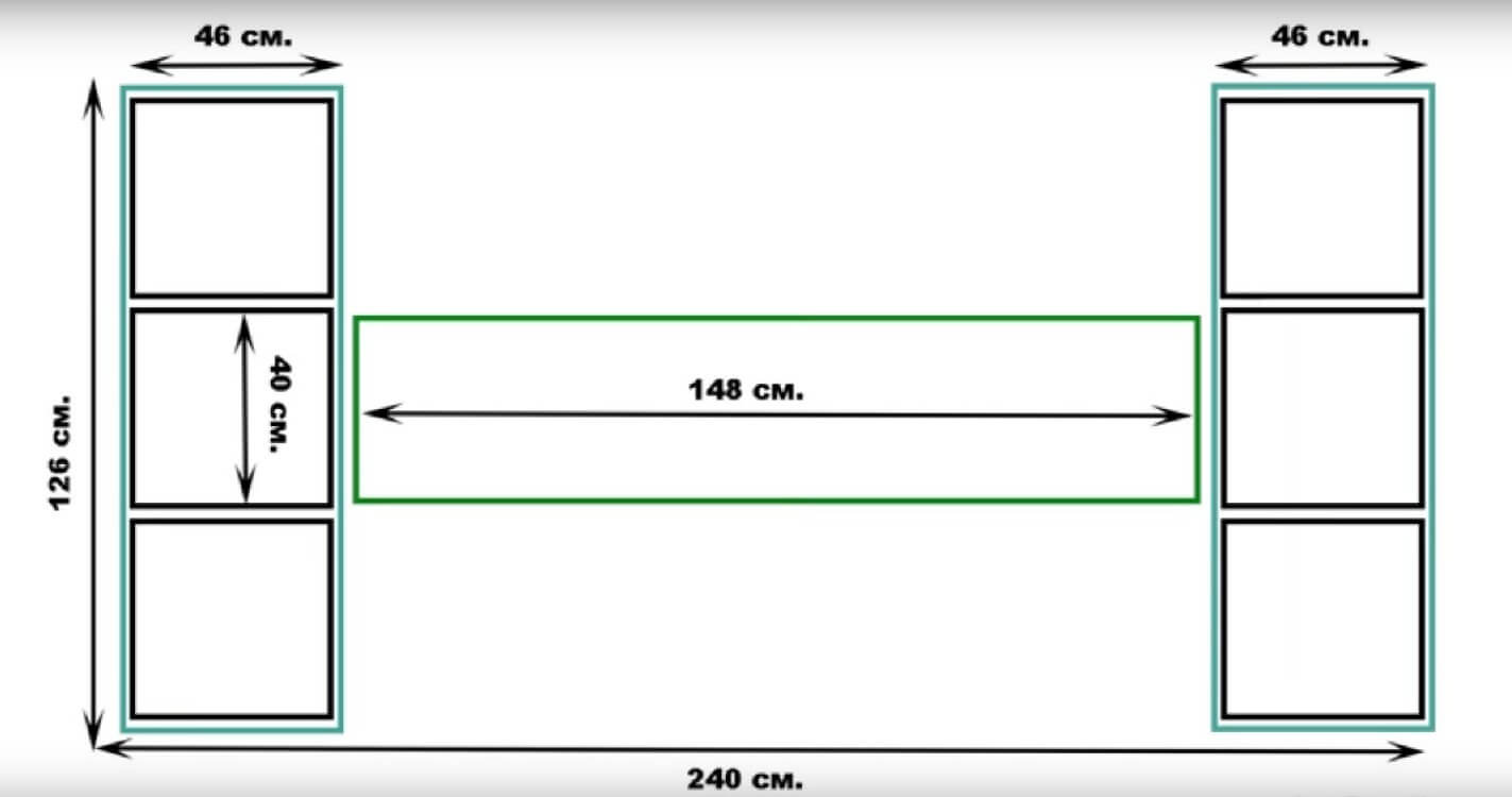 Получим 148 см – 4 см = 144 см. Это длина горизонтального блока без обвязки.