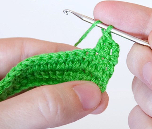 Как и в предыдущем случае, набираем необходимое нам количество воздушных петель и провязываем два ряда обычными столбцами с накидом.