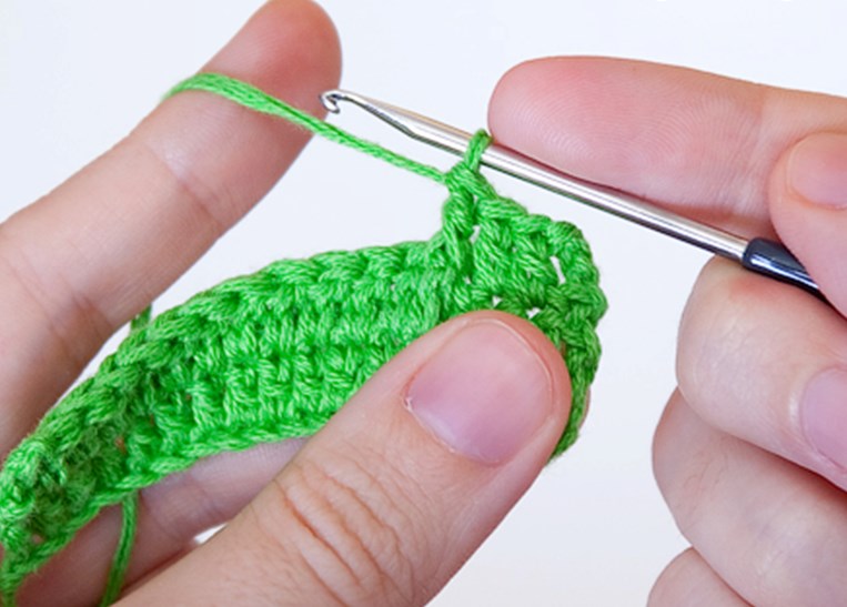 Для провязывания ряда, повторяем все выше описанные действия до последней петли. Для перехода на новый рядок, выполняем две-три воздушные петли подъема.