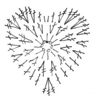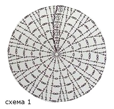 Для донышка набираем 8 п. и далее продолжаем вязание по предложенной выше схеме, на которой изображены с. с н. и в. п.