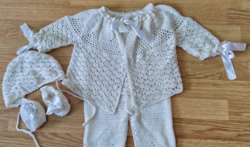 Вот и все, крестильный комплект для новорожденного малыша крючком готов!