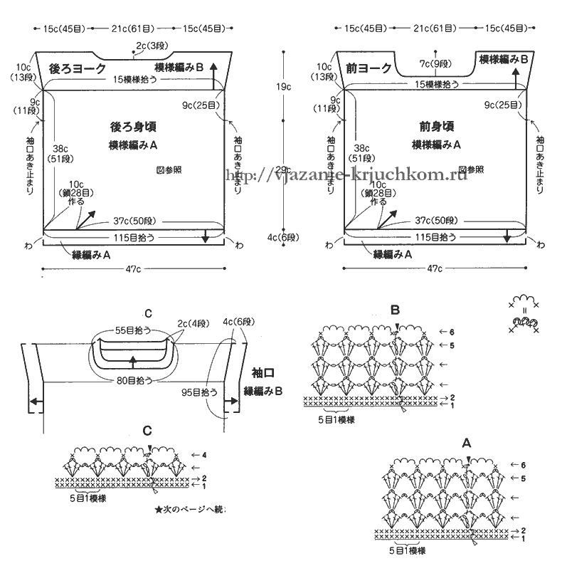 А теперь предлагаем несколько моделей одежды с фото, выкройками и подробными схемами узоров.