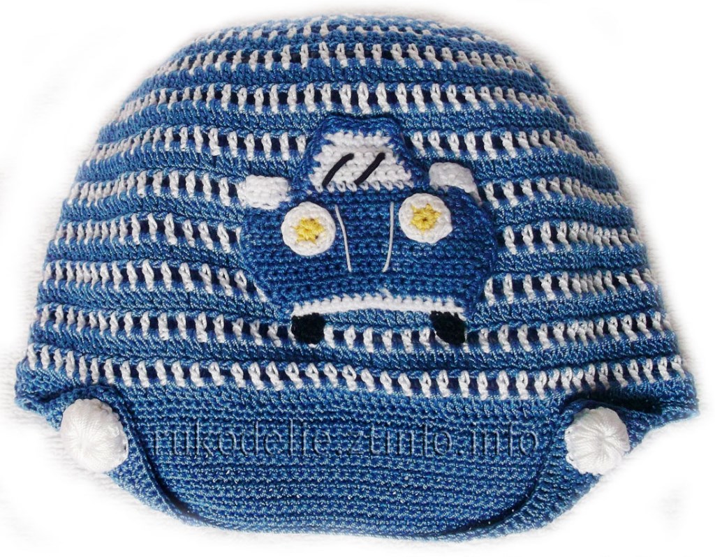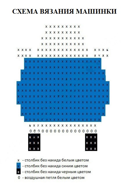 Связанная машинка обвязывается синей пряжей и с. без н.