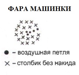Фары для машинки вяжутся проще некуда: вывязываем серединку желтой пряжей, а верх – белой.