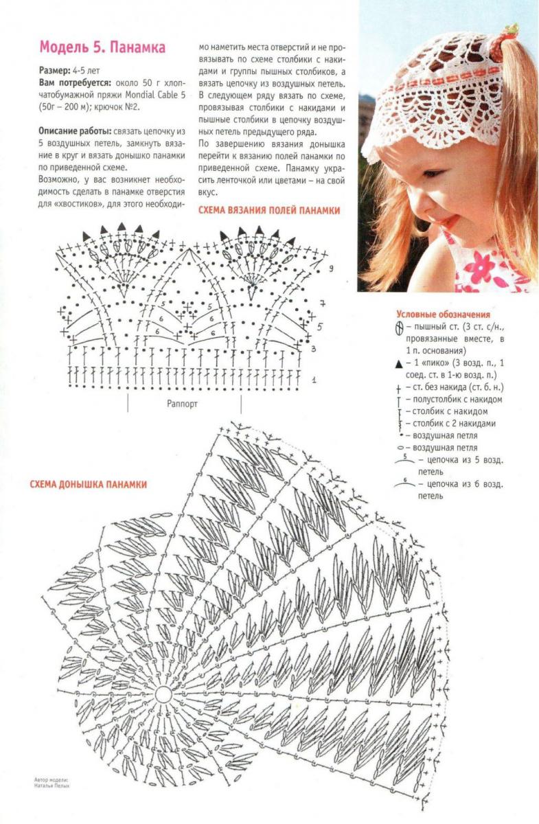 Панама с ажуром для девочки крючком подойдет на обхват головы 50-52 см.