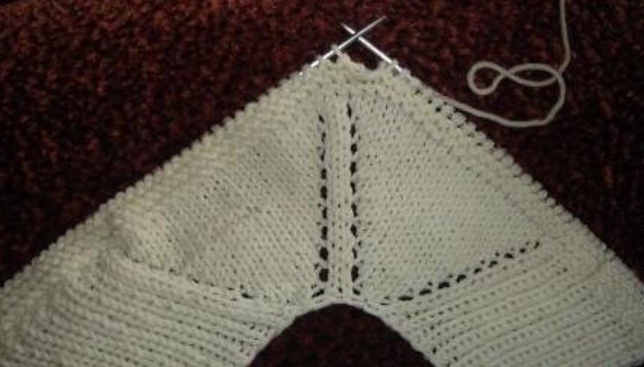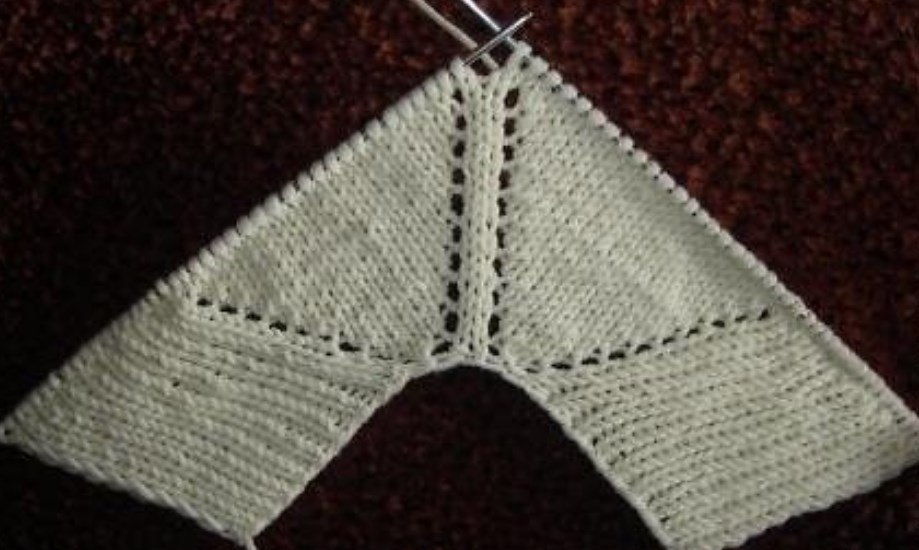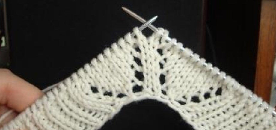 Продолжаем таким же образом до тех пор, пока не получим в одном из изнаночных рядов такую схему: 1 кр. п., 23 п. рез. 1 х 1, 47 и. п., 23 п. рез. 1 х 1, 1 кр. п.