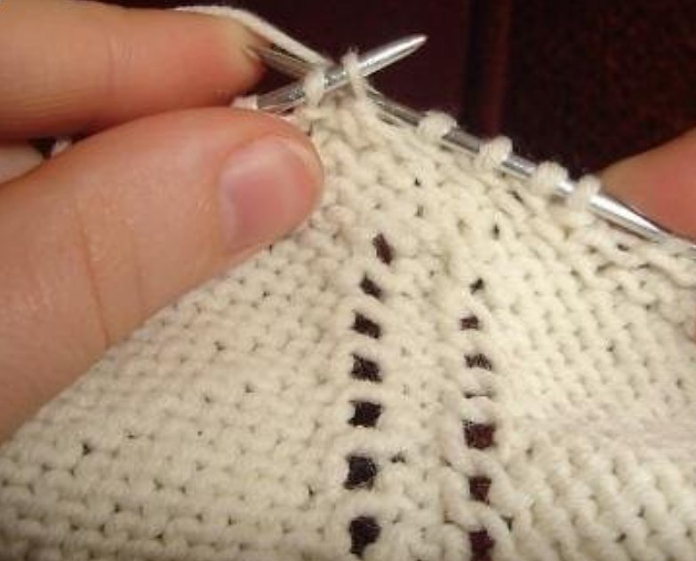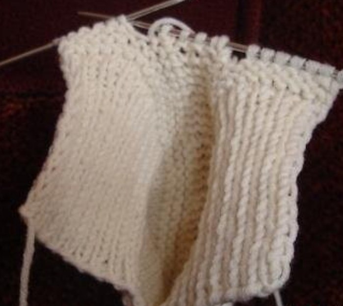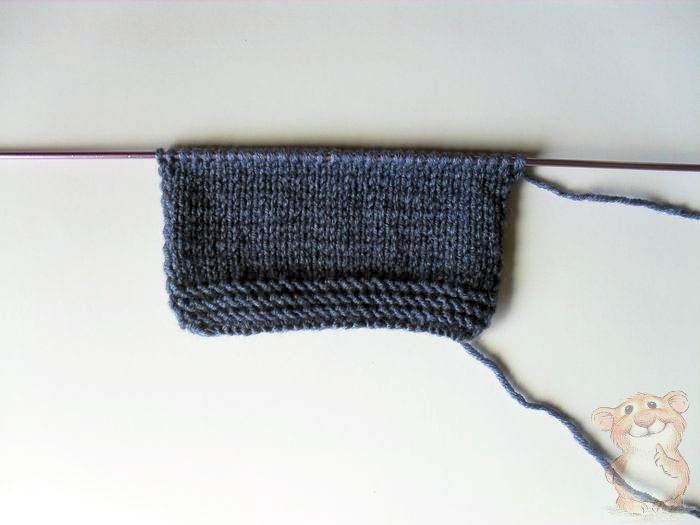 Вывязываем, пока не получим 10 нак., после чего 6 лицевых рядов.