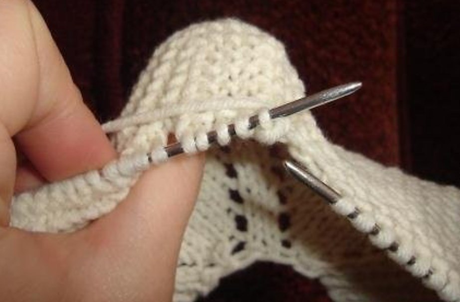 В одну из боковых петель (как на фото ниже) провязываем спицами 5 п.