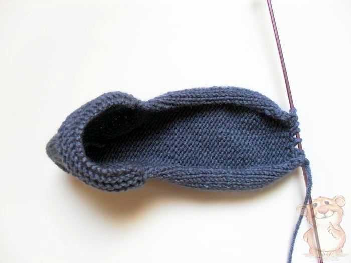 Вязать мы их будем большим полукругом от пятки к пятке укороченными рядами. Набираем 25 петелек, вязка – платочная.