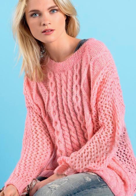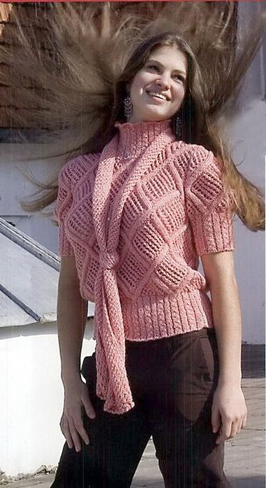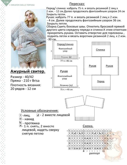 Этот вязаный женский джемпер просчитан для р-ров S; M; L; XL; XXL; XXXL.