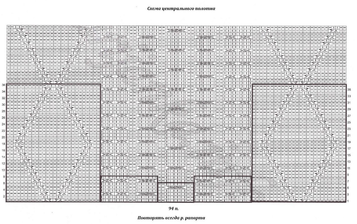 а) 1кр., 17п. ажур, 94п. – центральное полотно, 17п. ажур, 1кр.;