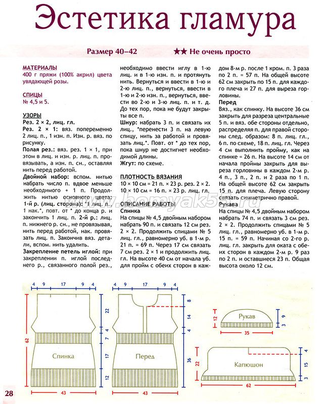 Плотность: 94п. фантазийным узором спицами No5,5 будет 40см;