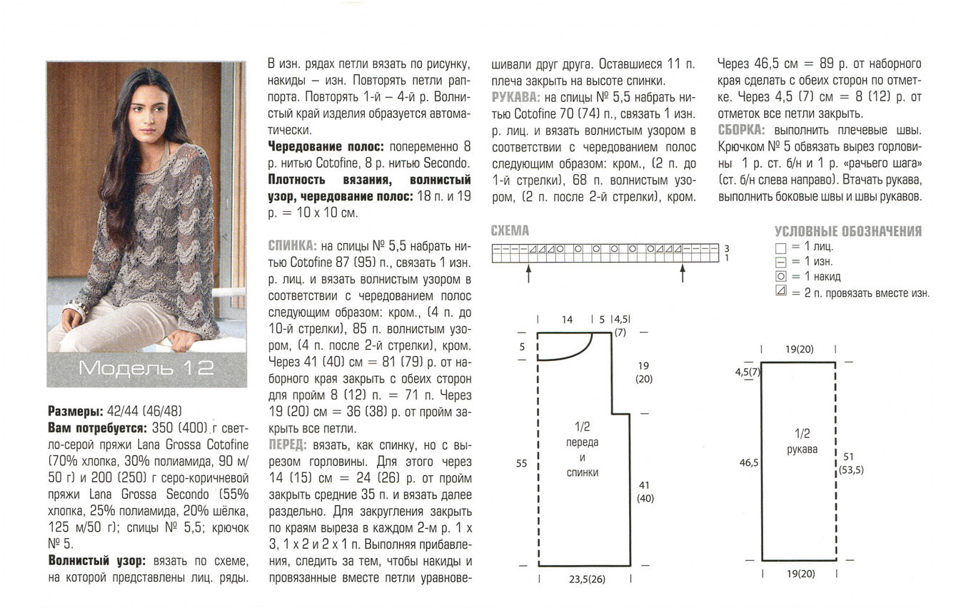 Женский джемпер просчитан на размеры: 34/36; 38/40; 42/44; 46/48; 50/52.