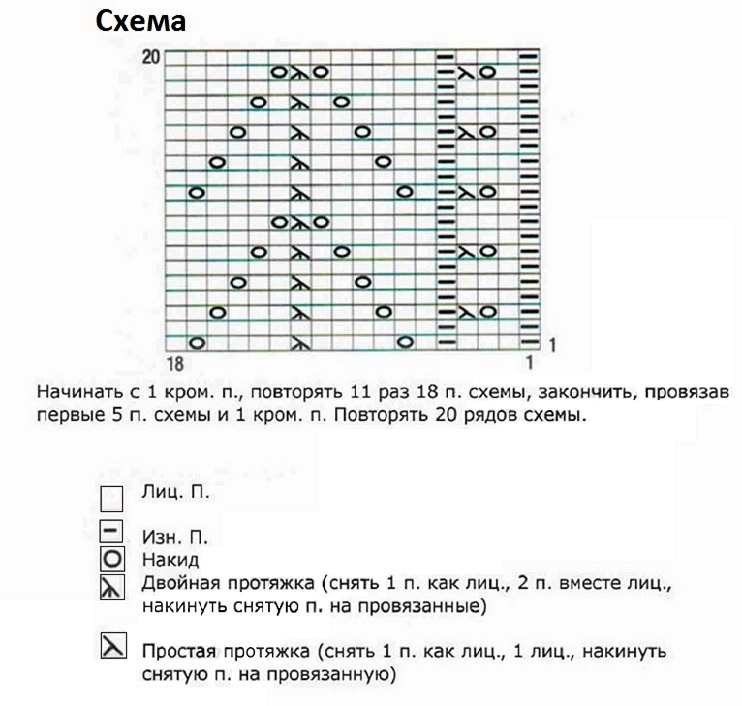 - ажурный узор: горизонтальный и вертикальный раппорты соответственно составляют 16п. и 16р. – см схема.