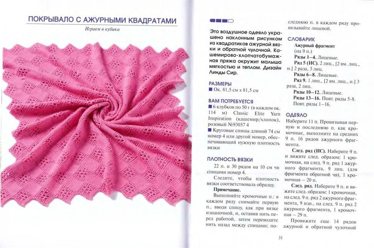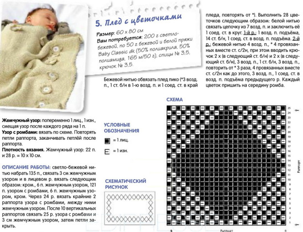 Связать своими руками для малыша такой красивый и теплый ажурный плед спицами, пользуясь представленным описанием и схемой – задача выполнимая даже для начинающих вязальщиц.