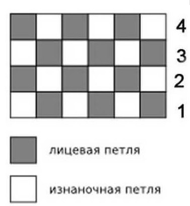 - платочный рис-ок: все петельки во всех рядках – лицевыми.