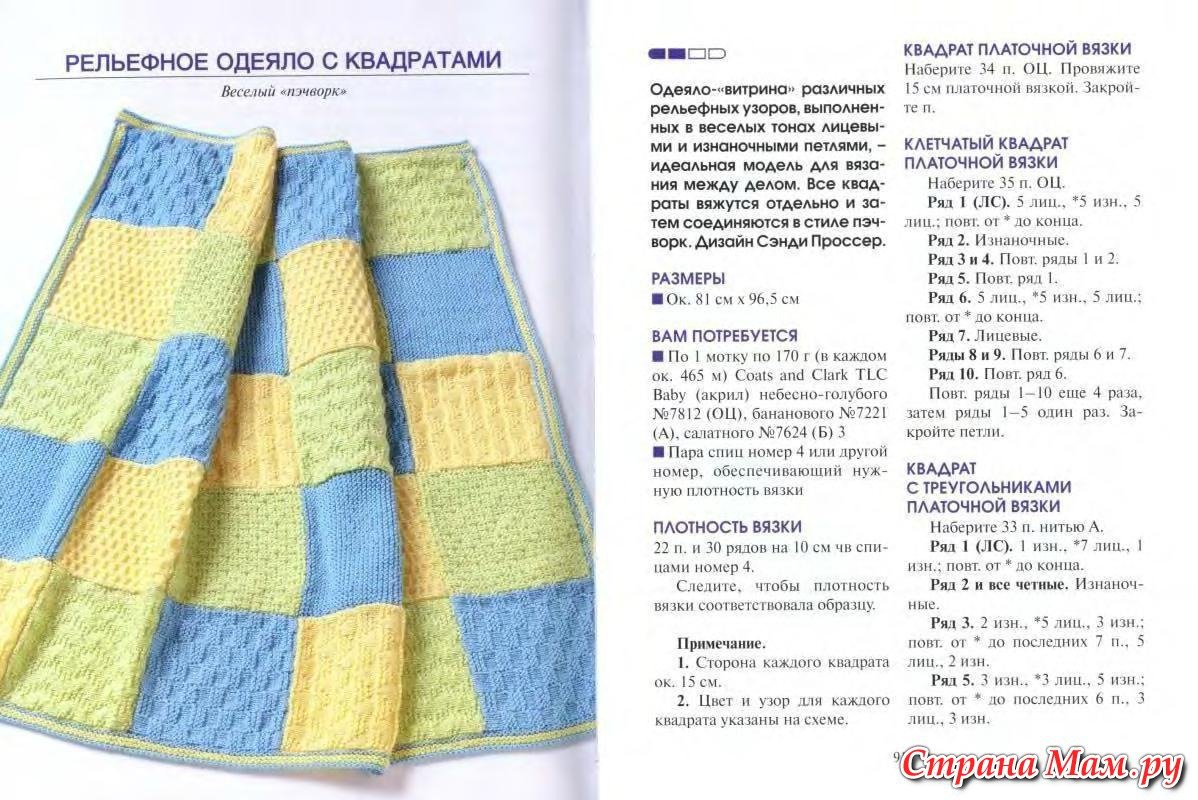 Вязаный плед – это олицетворение домашнего тепла и уюта. Такие покрывала не просто согревают в прохладную погоду, а и являются стильной и яркой деталью интерьера. Особое место среди пледов занимают детские покрывала. Будучи украшением для кроватки или коляски, они очень практичны и удобны. Связать такой плед можно из пряжи разного состава. Главное, чтобы она была высокого качества, не вызывала аллергии, не линяла при стирке. Широкий выбор узоров позволяет связать и теплый, плотный плед и легкое, ажурное покрывало для малыша. Учитывая, небольшие размеры изделия, возможность выбрать узор приемлемой для своего опыта вязания сложности, связать плед спицами схема и описание которых представлены в этой статье сможет любая вязальщица. Предлагаем вам несколько интересных вариантов.