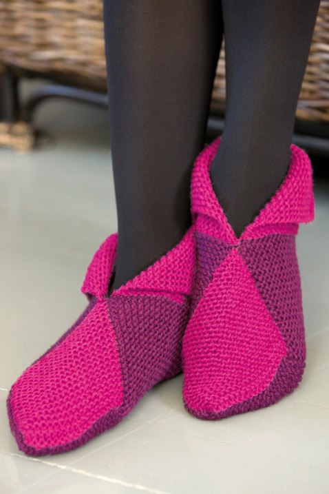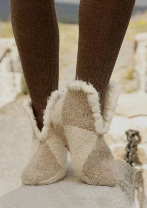 После стирки в машинке носки становятся плотнее и красивее. Подробный мастер класс с описанием поможет вам связать эту простую в исполнении, но очень эффектную модель. Обязательное условие – выдерживайте указанную плотность вязания, иначе после валяния может непредсказуемо измениться размер тапочек.