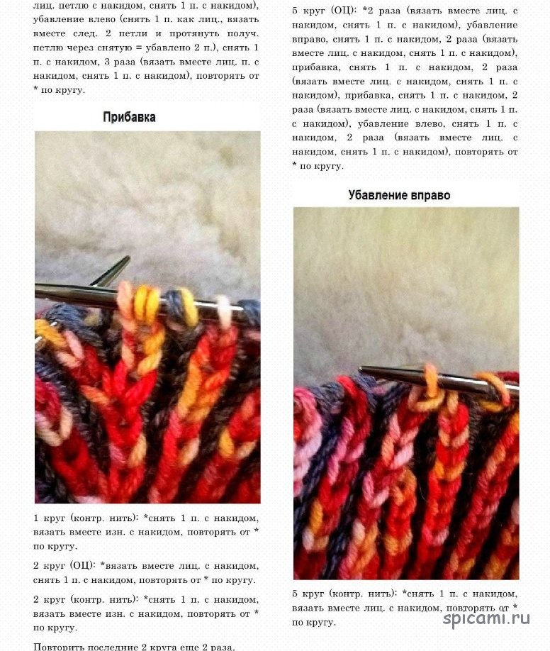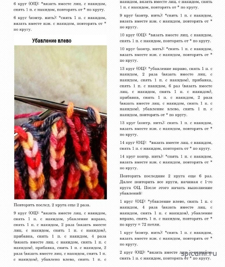 - 1р. убавления = 23р. от начала основного узора (А): *повторяем два Р пред-щего р. без изменений, третий Р – (1 (Лв+Н), 1 п. сн. с н.)х3, 1 УЛ, 1 п. сн. с н.*;