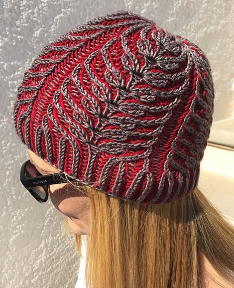 Далее детская шапочка в технике бриошь выполняется основным узором: