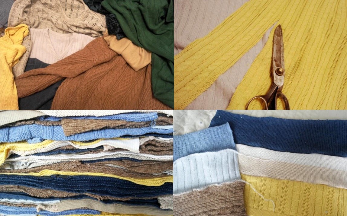 Отбираем своими руками материал для работы – ненужные свитера, кофты и т. п. Обязательно стираем их. После сушки пропариваем.