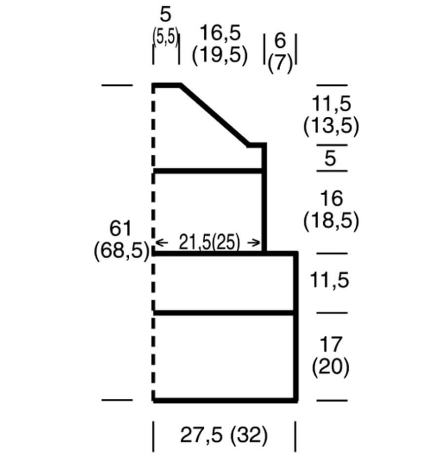 Одновременно через 5 см (= 16 р.) от распределения рис. В закрываем для пройм по бокам 1 х 6 (7) п., затем во всех 2-ых р. выполняем 17 (20) х 1 подчёркнутых двойных убавок. Получаем 23 (25) п.