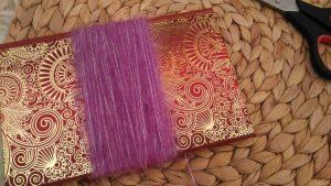 Длину бахромы выбираем произвольно. Нам понадобится некий шаблон, по которому будем отмерять длину кисточек. Я для этой цели использую блокнот.