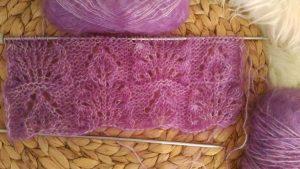 Для того, чтобы познакомиться с мохером поближе, попробуем связать шарф спицами. Такой вид пряжи идеально подходит для ажурных узоров, шарф получается практически невесомым, и очень красивым. Нитка хорошо держит форму, за счет чего узоры не искажаются.