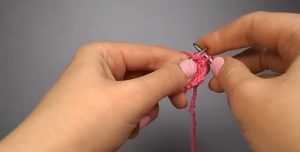 - После этого делаем накид, как показываем схема. Просто подцепляем спицей рабочую нитку.