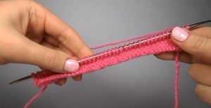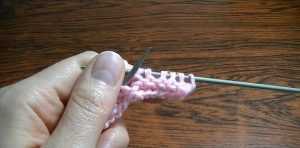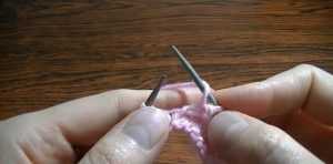 - 1Р.: все петельки лицевые. Стараемся подцеплять их за передние стенки.