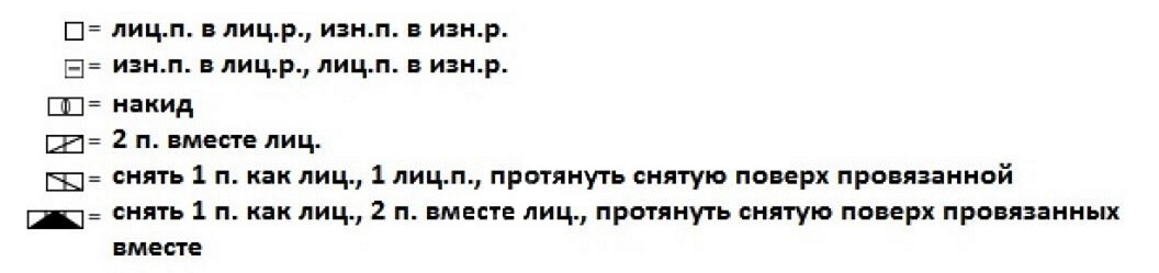 Плотность: на чулочном и ажурном узорах спицами No5 17 п. на 22 р. соответствуют 10 см на 10 см.