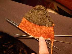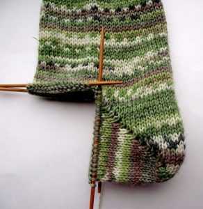 Предыдущее описание носка годится для тех вариантов, когда вязание начинается с паголенка. Но пятка бумеранг так же замечательно делается и в обратном направлении, когда работа ведется от мыска.