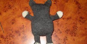 Следующими вяжутся спицами лапки. Количество петель для набора – шестнадцать. Спицы используйте носочные. Дальше вяжите круговые ряды из лицевой глади. После связанных восемнадцати рядов, смените КП на БП и свяжите еще двенадцать рядочков. Затем петли закрываются. Таким образом выполните еще три лапки.