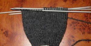 Для начала, наберите тридцать две петельки и распределите их по четырем спицам (по восемь на каждую). Отметьте себе, первый инструмент и вяжите вкруговую чулочным способом. Здесь выполняйте 5 раз по одному прибавлению через ряд в начале всех спиц. Всего выйдет пятьдесят две п. (по тринадцать на всех спицах). Дальше, свяжите пять сантиметров без изменения.