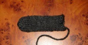Для хвостика возьмите КП и наберите носочными спицами двадцать п. Теперь, свяжите круговыми рядами ЛГ. Провязав четыре см, смените КП на БП и выполните еще шесть см. Теперь, убавьте в конце первой и третьей спиц, а также в начале второй и четвертой – по 1 п. во всех вторых р., пока у вас не получится в остатке четыре п. На завершающем этапе, вам нужно будет обрезать нитку, стянуть остаточные петлицы и закрепить.
