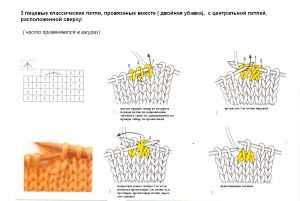 Для того чтобы убавить петли на полотне спицами, связанном лицевой гладью, нужно:
