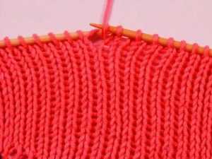 - В том месте, где Вам нужно прибавить петельку, введите правую спицу в протяжку справа налево за переднюю стенку.