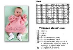 Вот такое ажурное платье для новорожденной девочки мы предлагаем вам связать. Здесь присутствует схема ажурного узора, по которой необходимо ориентироваться: