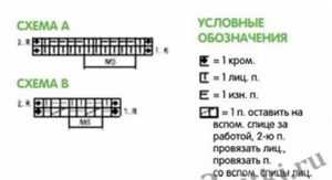Для вязания применяются такие узоры, как платочная вязка, а также узоры по схемам А и В:
