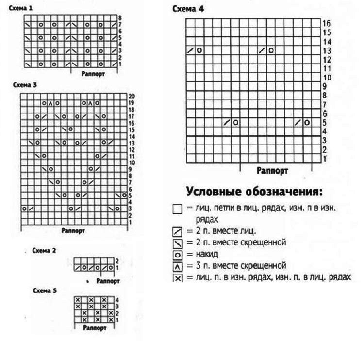 Сп. No3,5 набираем 54; 58; 62; 66 п. и провязываем 13 р. рез-ки. При этом начинаем в 1-ом (изн.) р. с 1 к., 1 изн/п, 2 лиц/п и завершаем зеркально.