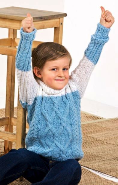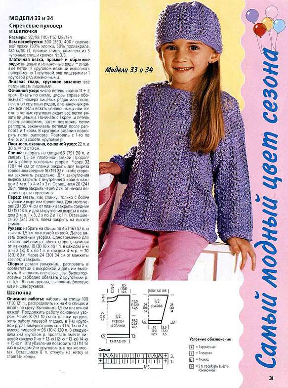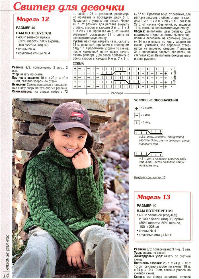 Данная модель подходит детям возраста 5-6 лет. Используемые цвета пряжи – условные. Изменив их по своему желанию, вы можете связать такую модель свитера для девочки.