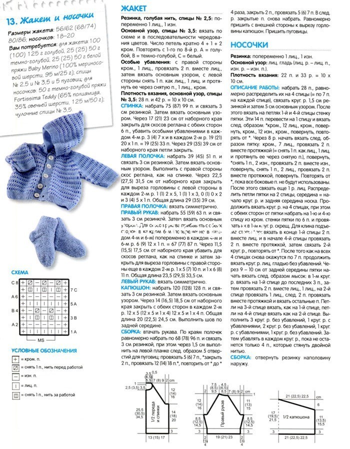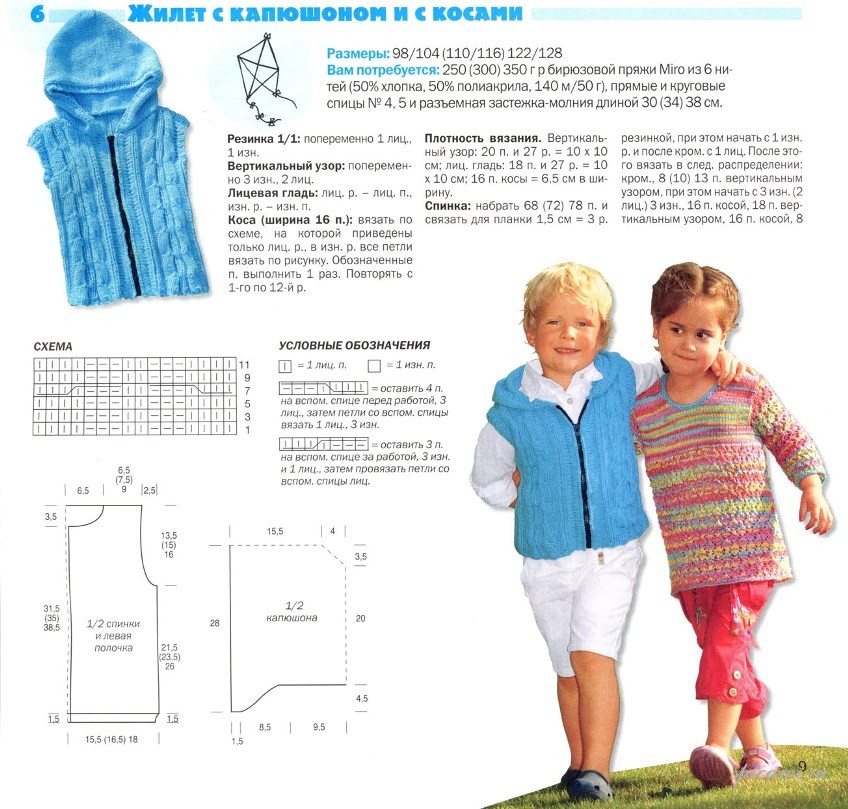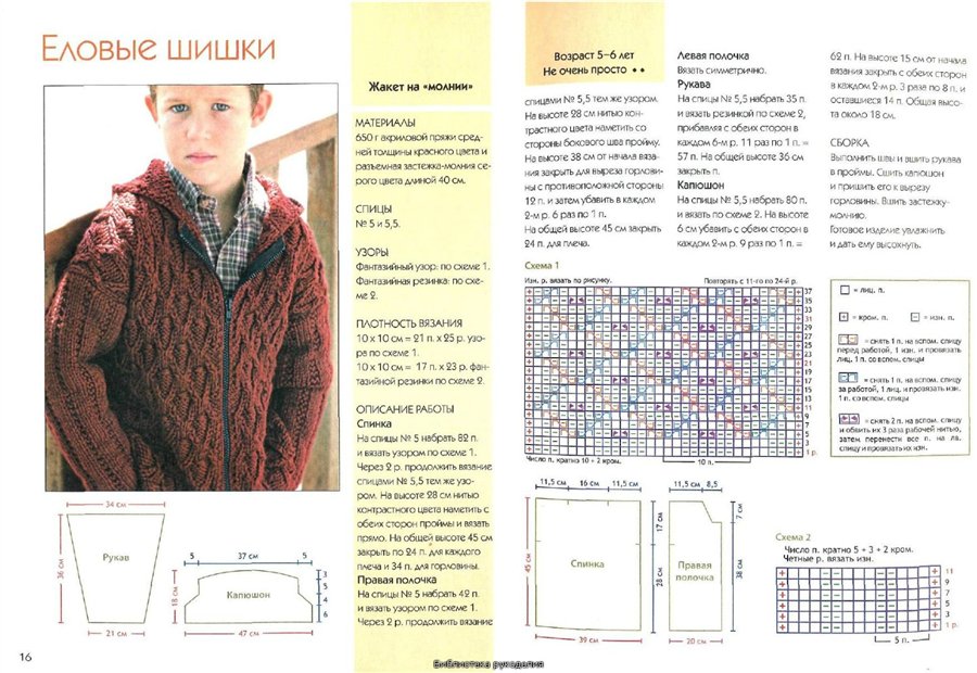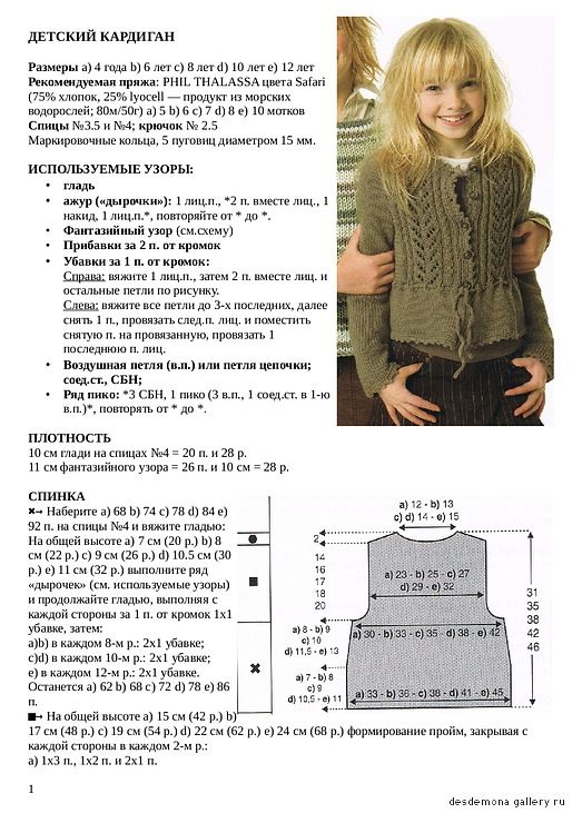 Расчеты позволяют выполнить вязание жакета детям разного возраста: 5/6 – 6/7; 7/8 – 8/9; 9/10 – 10/11; 11/12 – 12/13 лет.