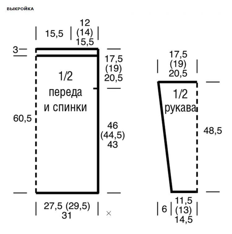 Поочерёдная смена спиц создаёт слегка присборенное полотно. Эти изменения не показаны на выкройке.