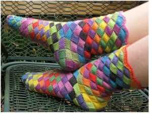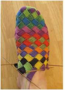 Одна из очень красивых техник вязания спицами – это техника энтерлак. Вещи, связанные в этом стиле по внешнему виду напоминают лоскутное шитье. Это изделия в этническом стиле. Как будто их достали из бабушкиного сундука и вдохнули новую жизнь. И вряд ли найдется рукодельница, которая не захочет научиться создавать такие вязаные шедевры. В этой статье предлагаем вам научиться создавать вязаные носки с помощью техники энтерлак.