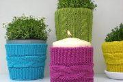 Такое украшение для интерьера комнаты, станет замечательным и неожиданным подарком на Троицу. Размер изделия в окружности составляет 44 на 57 см, а высота 15 на 20 см. Вязать чехол следует немного короче указанной окружности, так как он имеет свойство растягиваться. А если вы сделаете его на десять процентов меньше, тогда он не будет спадать.