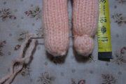 Руки и ноги вяжем аналогичной техникой, что и туловище. Для ручек набрать 10 П и провязать 34 Р. Перед тем, как будете стягивать ноги и руки, стоит набить детали наполнителем. Ручек и ножек нужно связать по 2 штуки. После того, как все детали будут пришиты к туловищу, можно приступать к окончательному оформлению куколки;